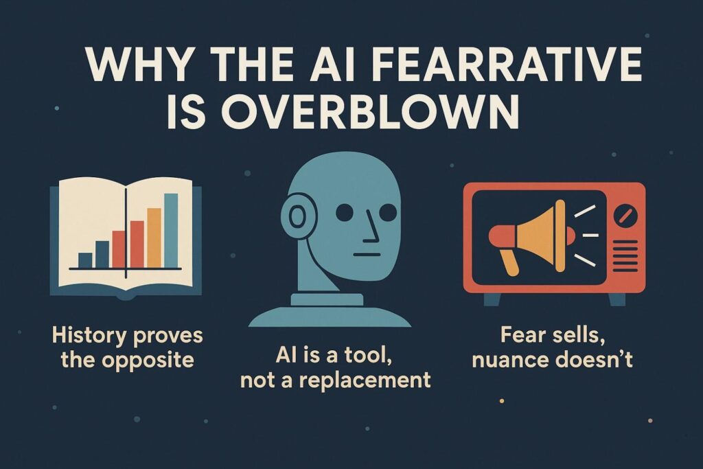 - Fear sells, nuance doesn’t. Media loves apocalyptic predictions. But reality is subtler: jobs evolve, not vanish overnight.