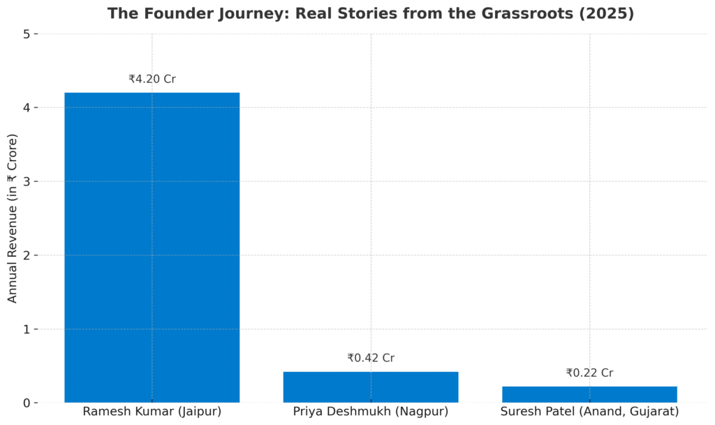 The fuller story includes Ramesh digitizing his father’s textile business in Jaipur, Priya building SaaS for coaching centers in Nagpur, and Suresh creating cattle telemedicine in a Gujarat village. It includes the 67,865 startups recognized by DPIIT from non-metro cities, the 2.8 million jobs they’ve created, and the ₹2.3 lakh crore in value they’re building—quietly, profitably, sustainably.