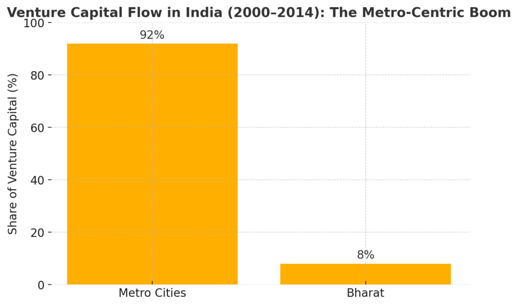 During this period, over 92% of venture capital flowed into just five cities. The narrative was simple: India’s entrepreneurial story was happening in Tier-1 cities, period. Bharat was a market to be served, not a place to build from.
