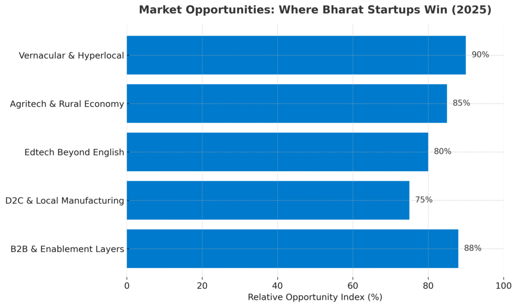Most Likely Sectors: Agritech (farm-to-market platforms), hyperlocal services (regional champions in logistics/delivery), vernacular edtech, and B2B SaaS for MSMEs.