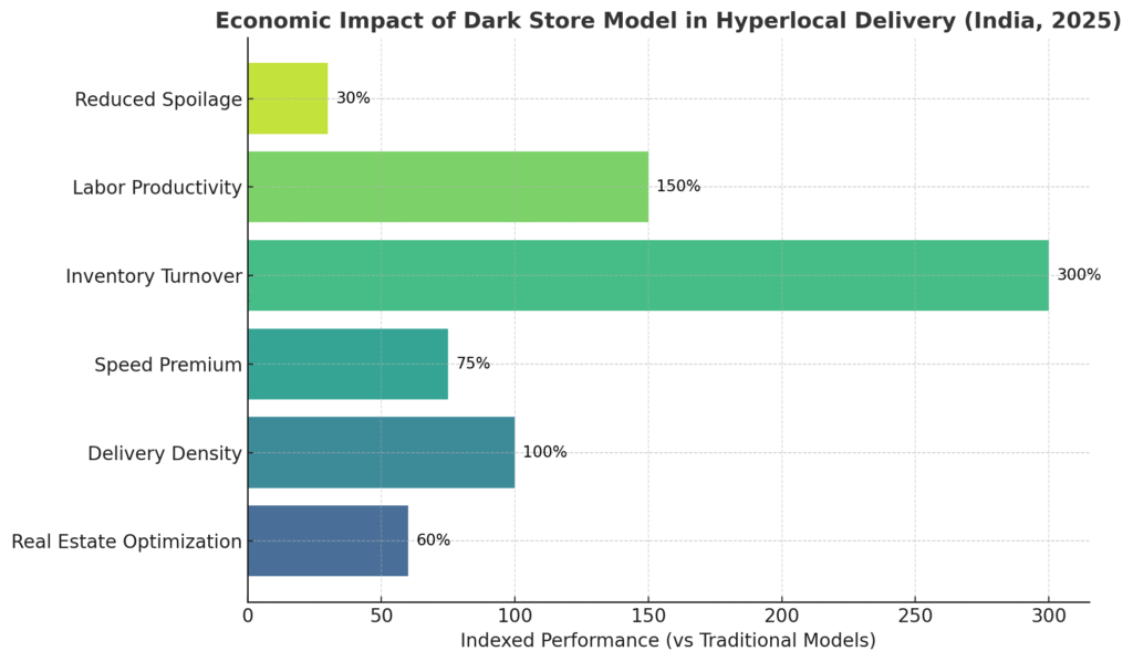- Real Estate Optimization: Dark stores operate at 2,000-5,000 sq ft facilities in high-density areas, requiring significantly lower investment than traditional retail